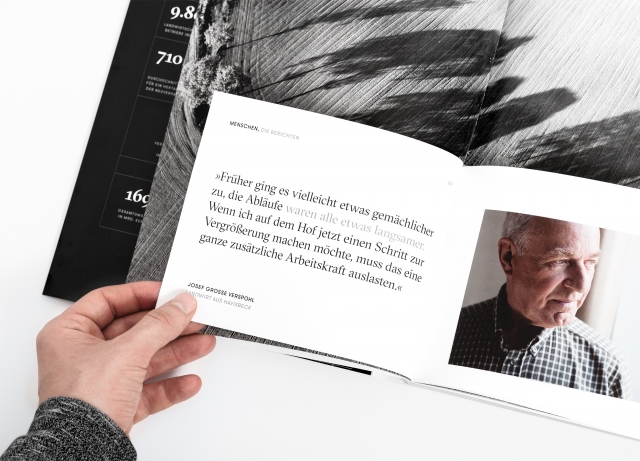 Der fotografische Stil basiert auf einer dokumentarischen Erzählform, mit möglichst wenig inszenierten Motiven. Unser Ziel war es, bestehende Situationen einzufangen und Personen in ihrer natürlichen Umgebung zu zeigen. Auf diese Weise werden Persönlichkeiten und Stimmungen in einer authentischen und effektiven Weise präsentiert, entsprechend dem Inhalt und visuellen Gesamteindruck des Lageberichtes.
