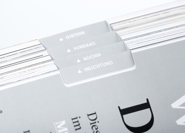 Gestalterisch hebt sich das vollständig in Graustufen gehaltene Heft vom Rest des Lageberichtes ab. So sind etwa die Fotos, die thematisch mit dem Inhalt der jeweiligen Seite verknüpft sind, im Studio entstanden.